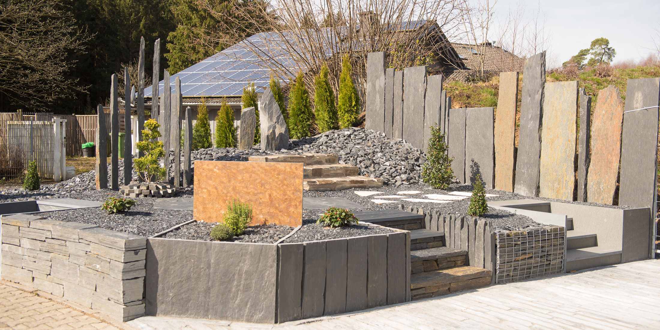 Schiefer, Basalt, Travertin + Marmor für Neubau, Renovierung und im Garten.