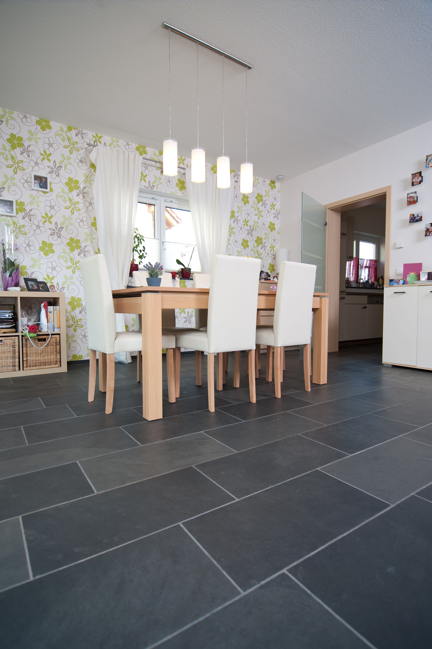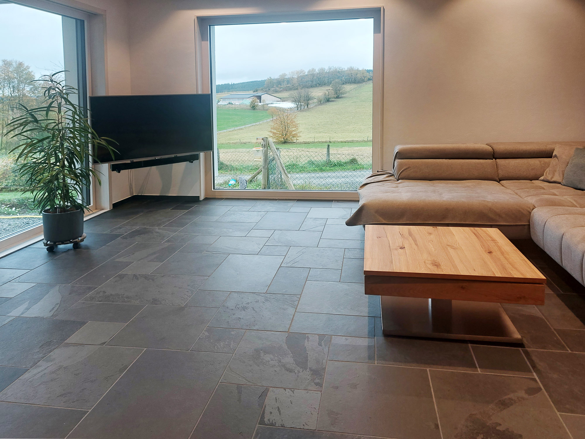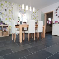 Echte Schieferfliesen haben eine ausgezeichnete Wärmeleitfähigkeit und unterstützen damit jede Heizung, egal ob als Fußbodenheizung oder mit Heizkörpern. Denn Schiefer speichert Wärme und gibt diese langsam wieder in den Raum ab. Dadurch sinken Ihre Heizkosten.