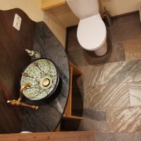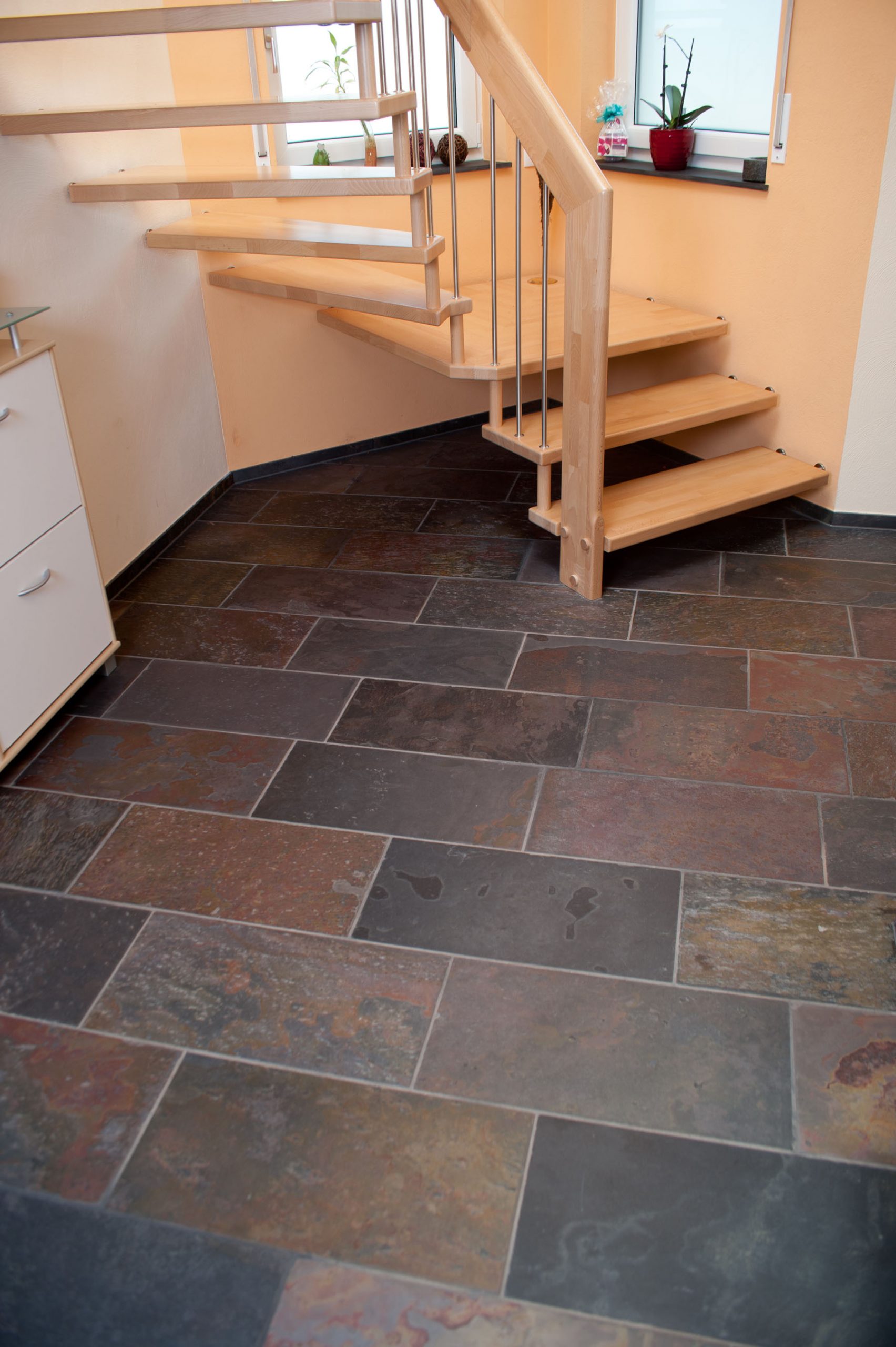 • Schieferfliesen sind im Verhältnis zu einer guten Keramik günstiger und sieht auch nach Jahren immer noch sehr gut aus.