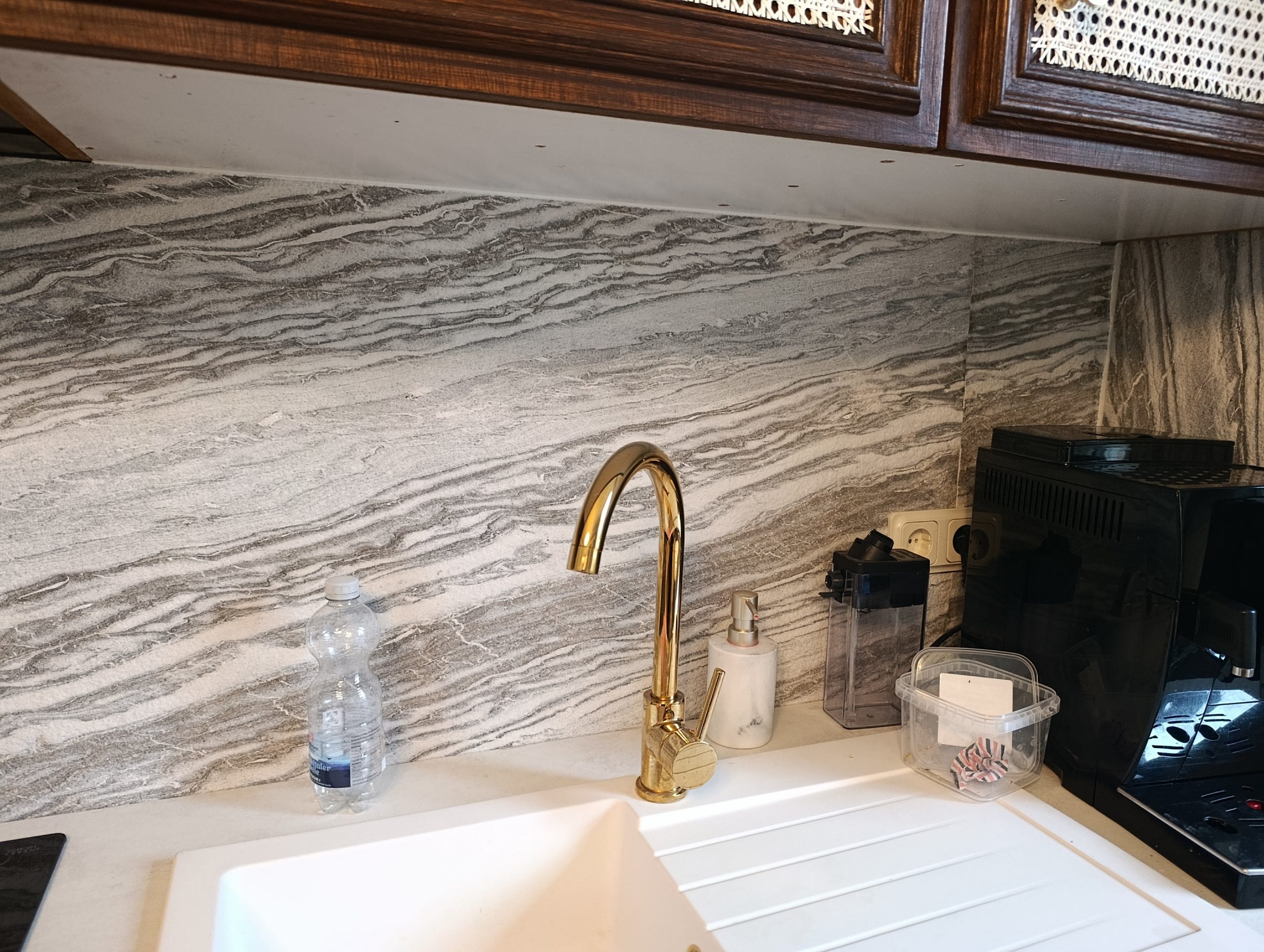 Große Platten: 1-3 mm dicke Dünnstein-Platten im Format 122×61 cm und 244×122 cm rückseitig mit Harz und Glasfaser verstärkt, Anwendungsbeispiele: Dünnschiefer Arctic Storm Dünnschiefer Arctic Storm Dünnschiefer Arctic Storm Dünnschiefer Arctic Storm Dünnschiefer Arctic Storm Dünnschiefer Arctic Storm Größe der Platten: 122×61 cm oder 244×122 cm ca. 1-3 mm dick Geeignet: für den Innen- und Außenbereich für Wand und Boden z.B. als Steintapete im Wohnbereich, als Küchenrückwand oder in der Dusche … flexibel, auch für Rundungen geeignet Material: echter Marmor rückseitig verstärkt, fugenlos und leicht Gewicht ca. 2-3 kg / qm Zusatzinfos: nur ganz Platten bestellbar Leicht mit einer kleinen Trennscheibe, Stichsäge oder einer scharfen Schere zu schneiden