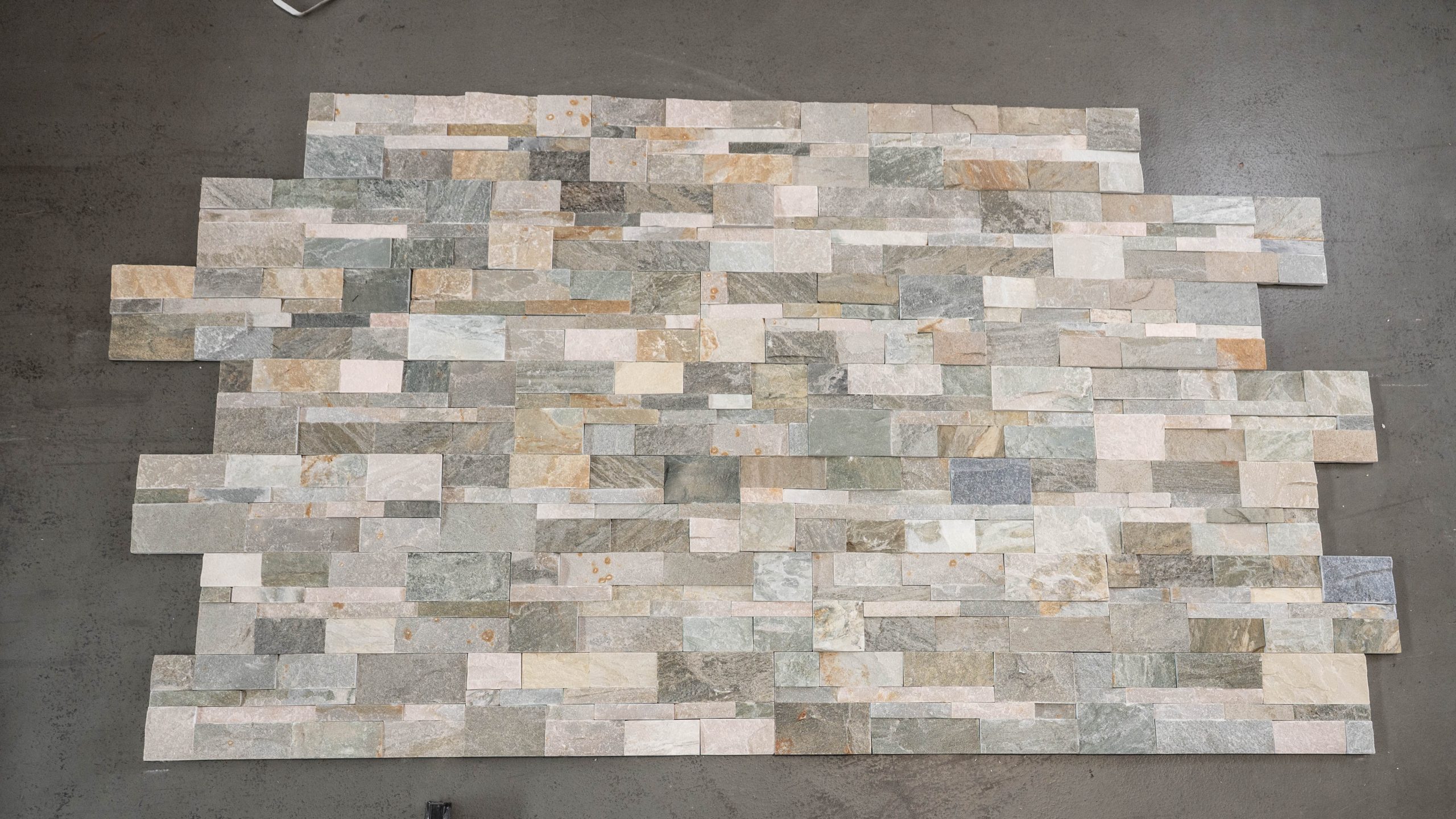 Rechteckige Module: Quarzit-Rechtecke als Modul vorverklebt zur fugenlosen Verlegung ebene Rückseite und darum leicht mit flexiblem Schnellkleber zu verlegen Anwendungsbeispiele: Verblender Alpaka Verblender Alpaka Verblender Alpaka Größe der Module: 60×20 cm ca. 20-30 mm dick Geeignet: für den Innen- und Außenbereich Material: Quarzit Unterschiedliche große und kleine Rechtecke pro Modul Gewicht ca. 60 kg / qm Zusatzinfos: verpackt in Kartons wird in Einwegpalette angeliefert Leicht mit Nassschneider oder einer Trennscheibe (Flex) zu schneiden Passende Außenecken an Lager