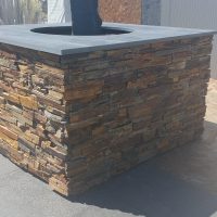 Buntschiefer-Bruchsteine als Modul rückseitig zementär vorverklebt zur fugenlosen Verlegung