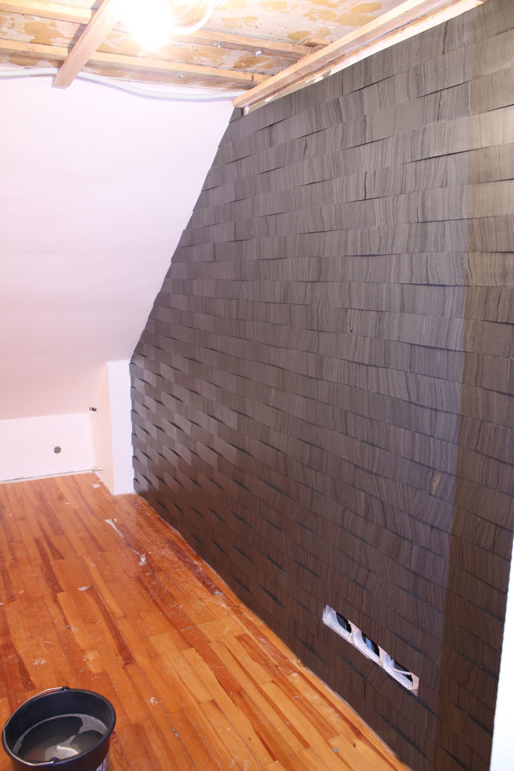 die fugenlos in verschiedenen Mustern an die Wand verblebt werden